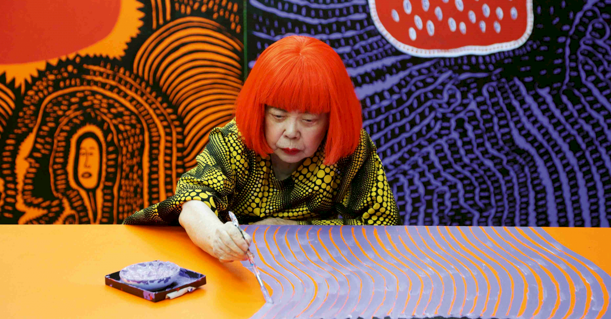Bild: Yayoi Kusama bei der Arbeit an My Eternal Soul (2009–2021), 2017 © YAYOI KUSAMA